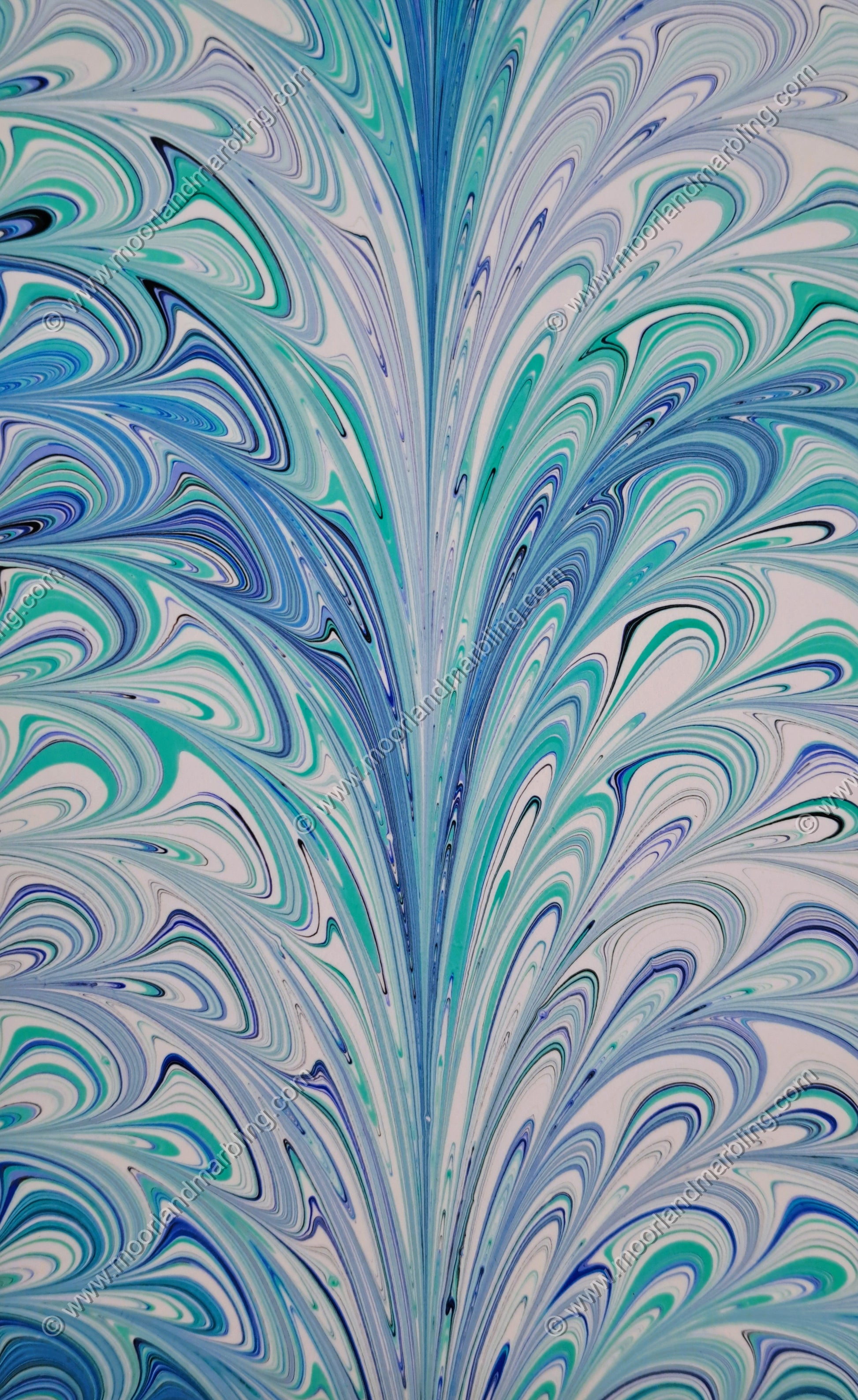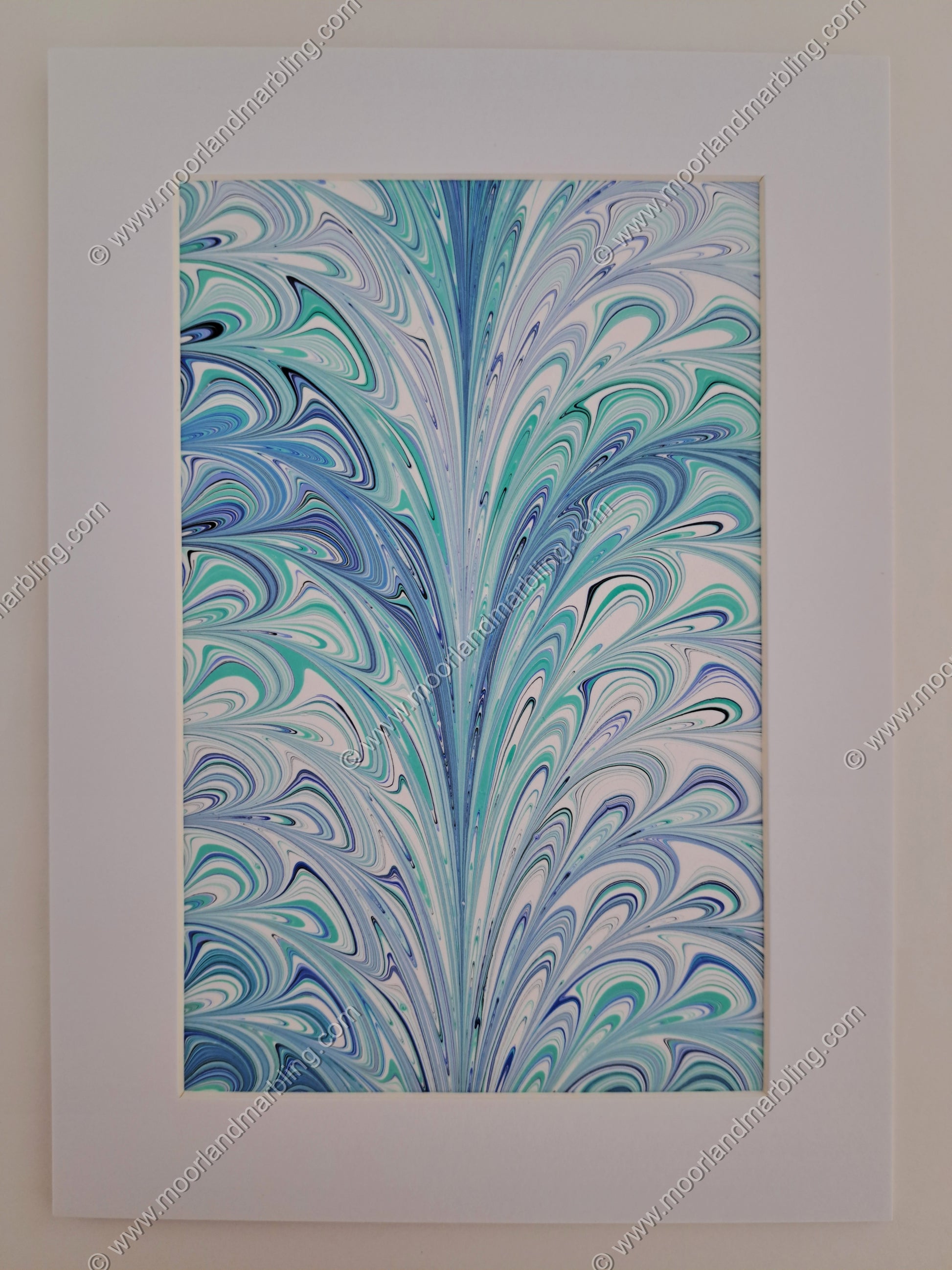 Original Acrylic on Paper Marbled Artwork turned into a luxury Art Card. The pattern is Palm.