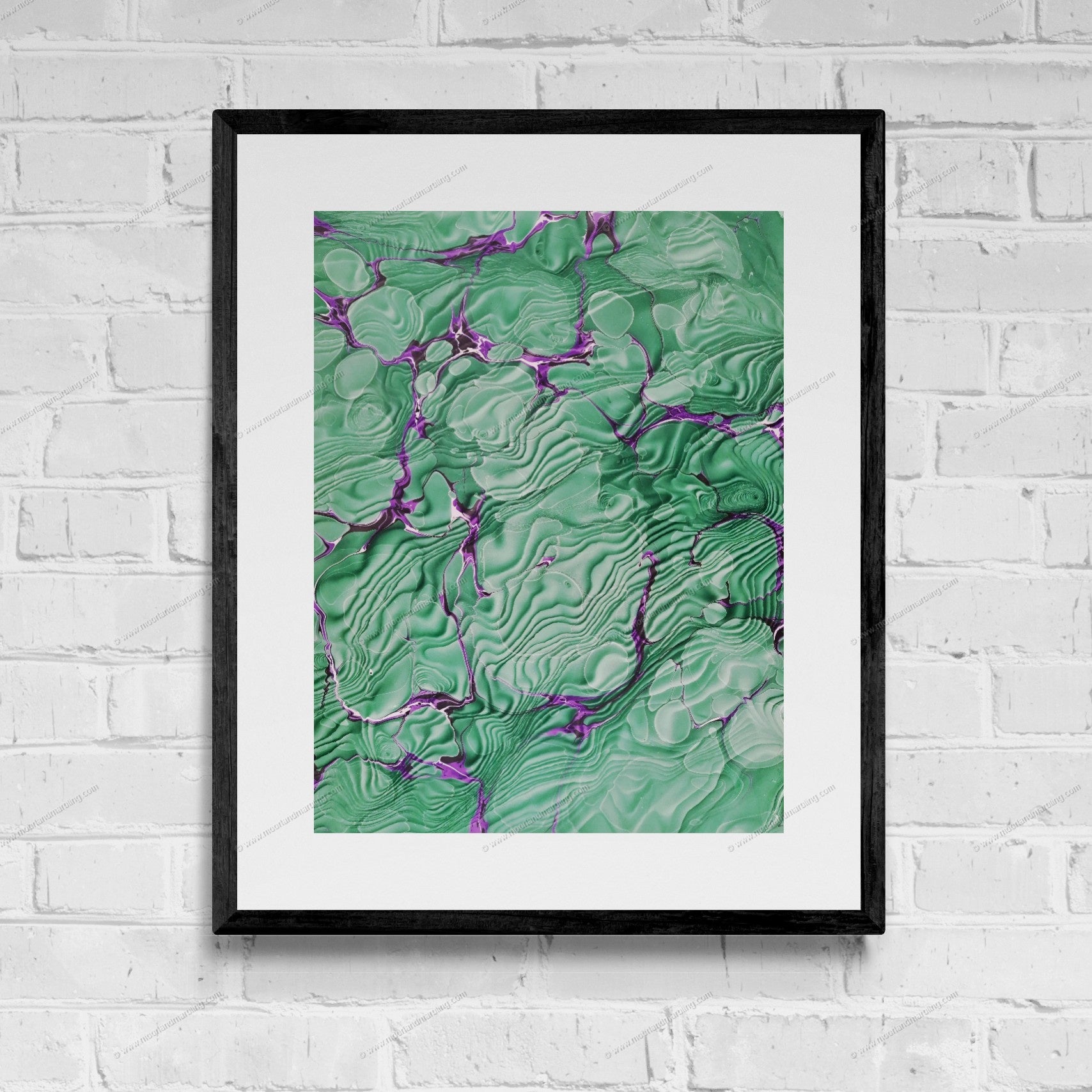 Original Acrylic on Paper Marbled Artwork, named "Malachite Byzantium"