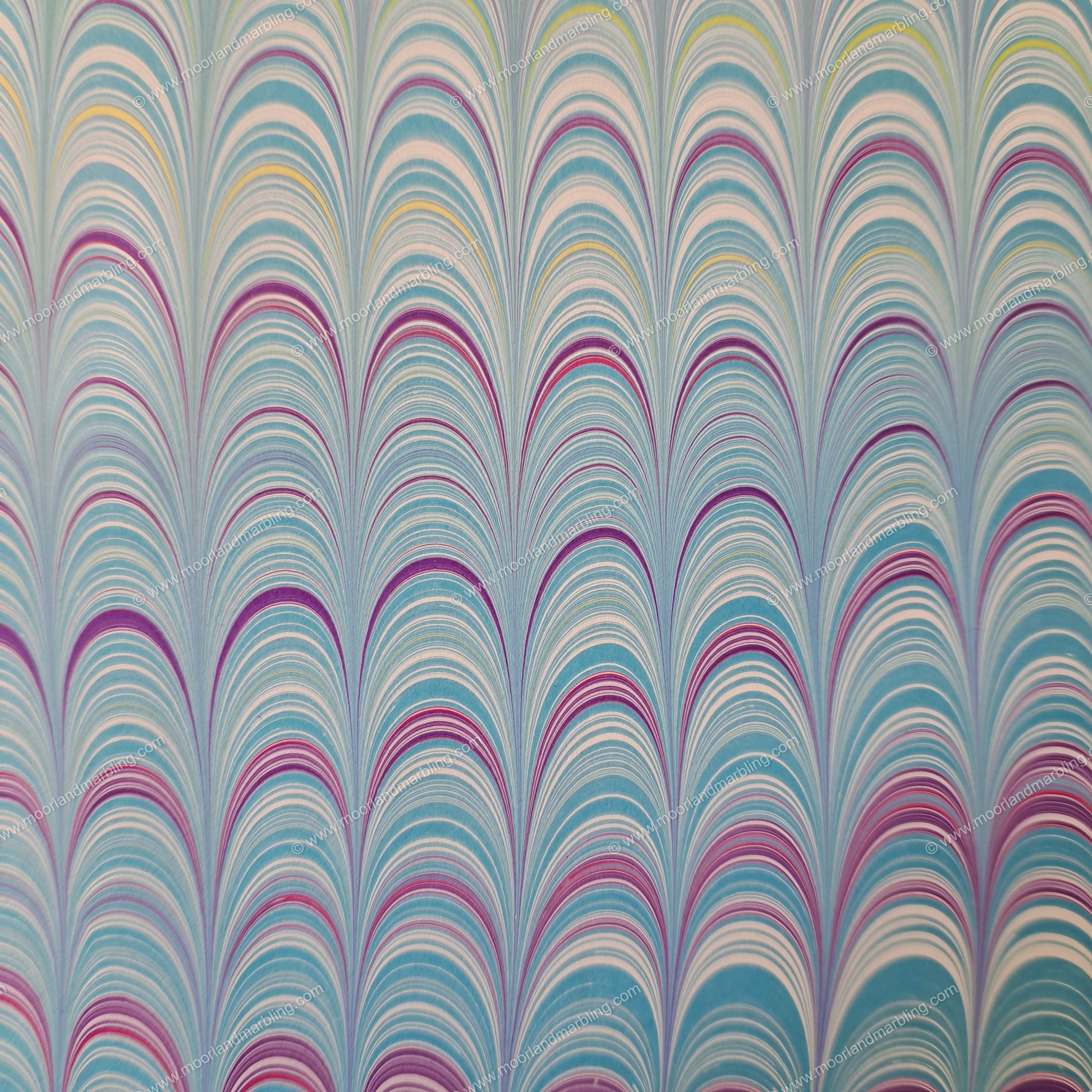 A colourful rainbow palette finished with a "Nonpareil" marbling pattern oriented along the length of the piece.
